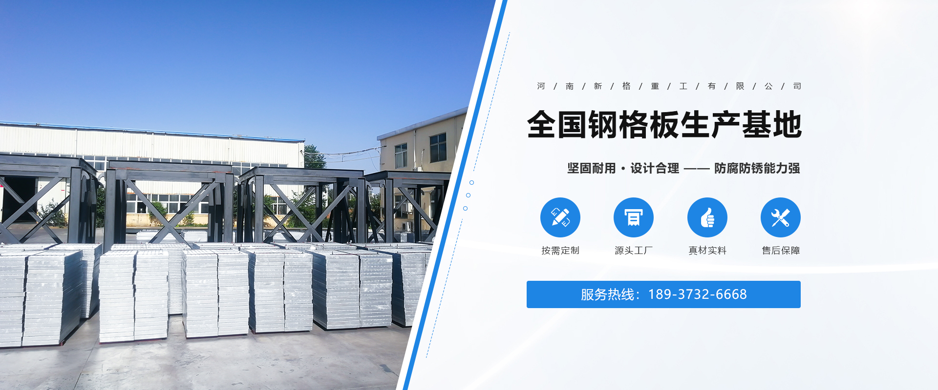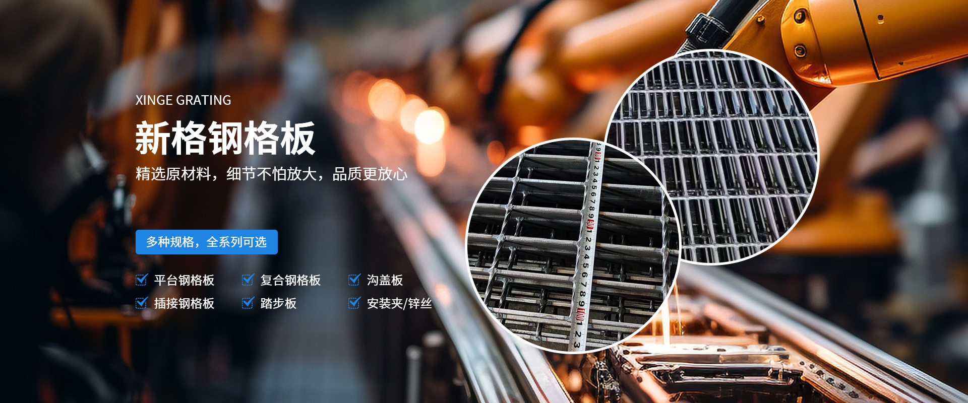 河南新格重工有限公司成立于2007年,占地36000余平方米,是河南省專注于鋼格板設計、制造、銷售的加工制造企業。公司一貫秉承“打造全國鋼格板基地”的企業理念,在“創新、務實、奉獻”的企業精神指引下,逐漸成長為一家具有現代化管理理念、優良的企業文化及靈活的經營機制的創新型加工制造企業?! 」静捎媚壳笆澜缟锨靶l的制造技術,由計算機控制的鋼格板壓阻焊機制造,機械手自動將橫桿橫放在均勻排列的扁鋼上,通過強大的電焊功率和液壓力將橫桿壓焊入扁鋼內,從而得到焊點固定、穩定性高、強度大的高質量鋼格板。公司擁有成熟的CAD設計、制造技術以及優良的工程設施經驗,獨立自主的進出口貿易資質,通過ISO9001資質體系認證。所生產的鋼格板系列產品從外觀質量、尺寸公差、焊接質量等方面均滿足客戶的需求。公司可按中國鋼格板YB/T4001.1-2007標準生產,也可按符合美國ANSI/NAAMM(MBG531-88)、英國BS4592-1987、澳大利亞AS1657-1985等標準進行生產。產品暢銷全國三十多個省、市、自治區,并有部分產品出口到國外,給上百家大型企業提供了堅實可靠的服務,得到了廣大用戶的一致肯定。  公司始終堅持“視品質為生命,視顧客為上帝”的經營宗旨,依托成熟的技術力量及良好的企業信譽,竭誠為廣大用戶提供高質量的產品及全方面的售前、售中、售后服務?! ∥覀內w新格人將帶著真誠的期望,一如既往地以具有競爭力的價格、高質量的產品為工程項目提供盡善盡美的服務,并希望與用戶單位建立長久有好的合作伙伴關系!